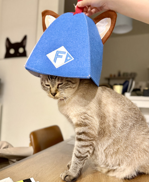 サウナハットを被せようとするとこの表情。同じ推しチームのファンとは関わりたくない「同担拒否」なのか、他チームのサポーターだったのか…